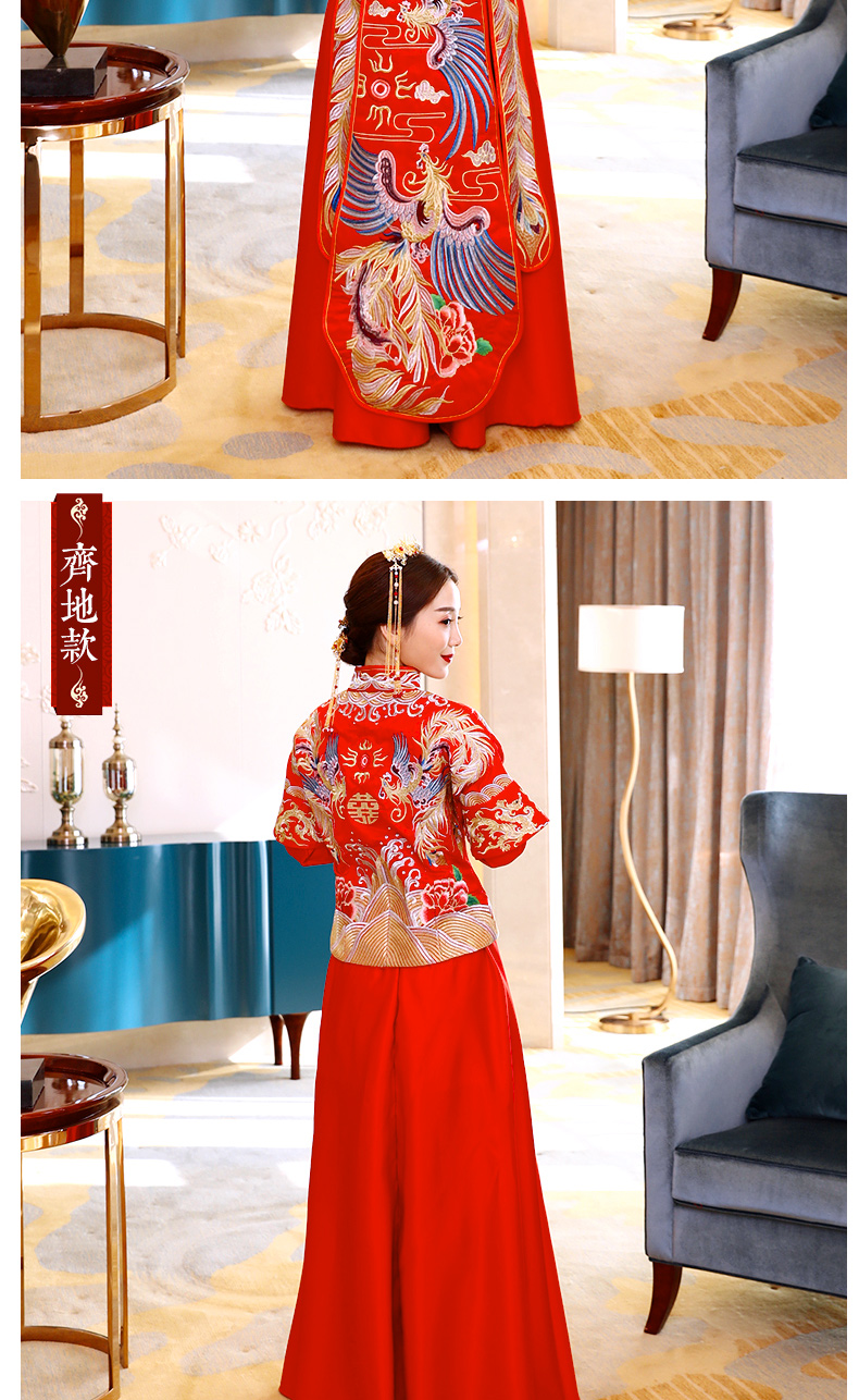 秀禾服新娘2018新款中式礼服古代婚纱凤冠霞帔结婚古装出阁服秀禾酒红色4