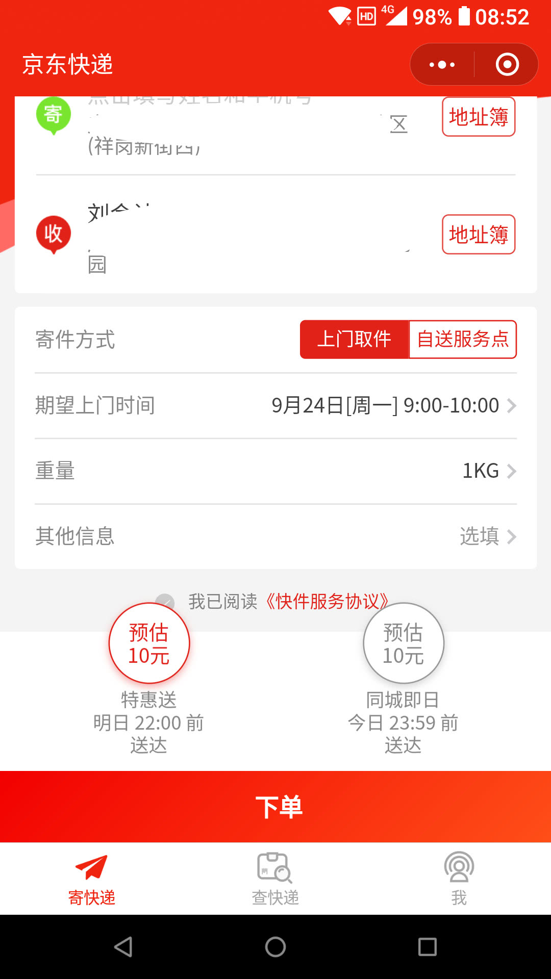 [最佳答案] 顺丰快递同城价格是多少;是可以在当天送到的,收费:首重12元/kg、续重2元/kg 。。。 顺丰同城快递,一般是上午(9点左右)寄出,下午送到收件;下午寄出,只有第二天上午派送收件了。 (如果要更快的,可用 同城闪送 近点的在30分钟左右就能送到,远点的在60分钟内送到) 供参考