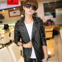 UYUK 男式机车韩版修身翻领皮衣男铆钉青年p