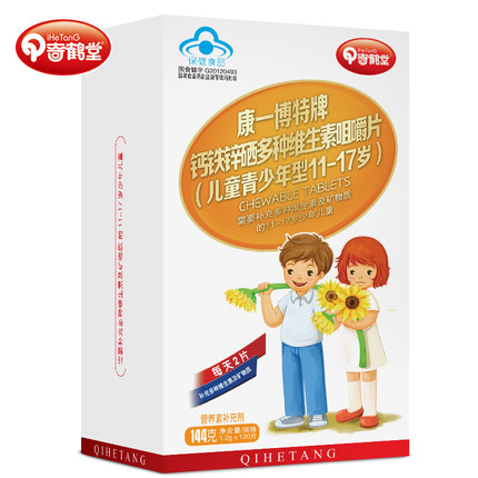 奇鹤堂康一博特牌钙铁锌硒维生素咀嚼片(儿童