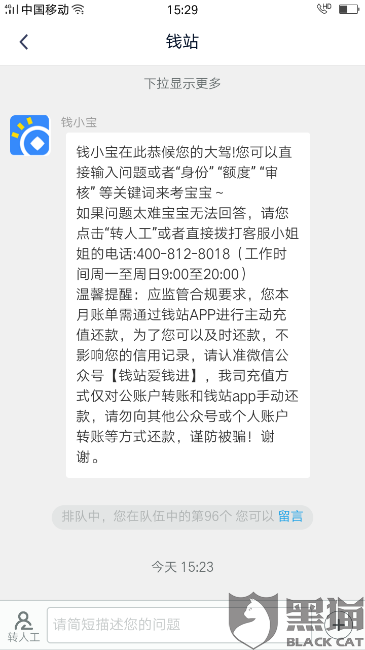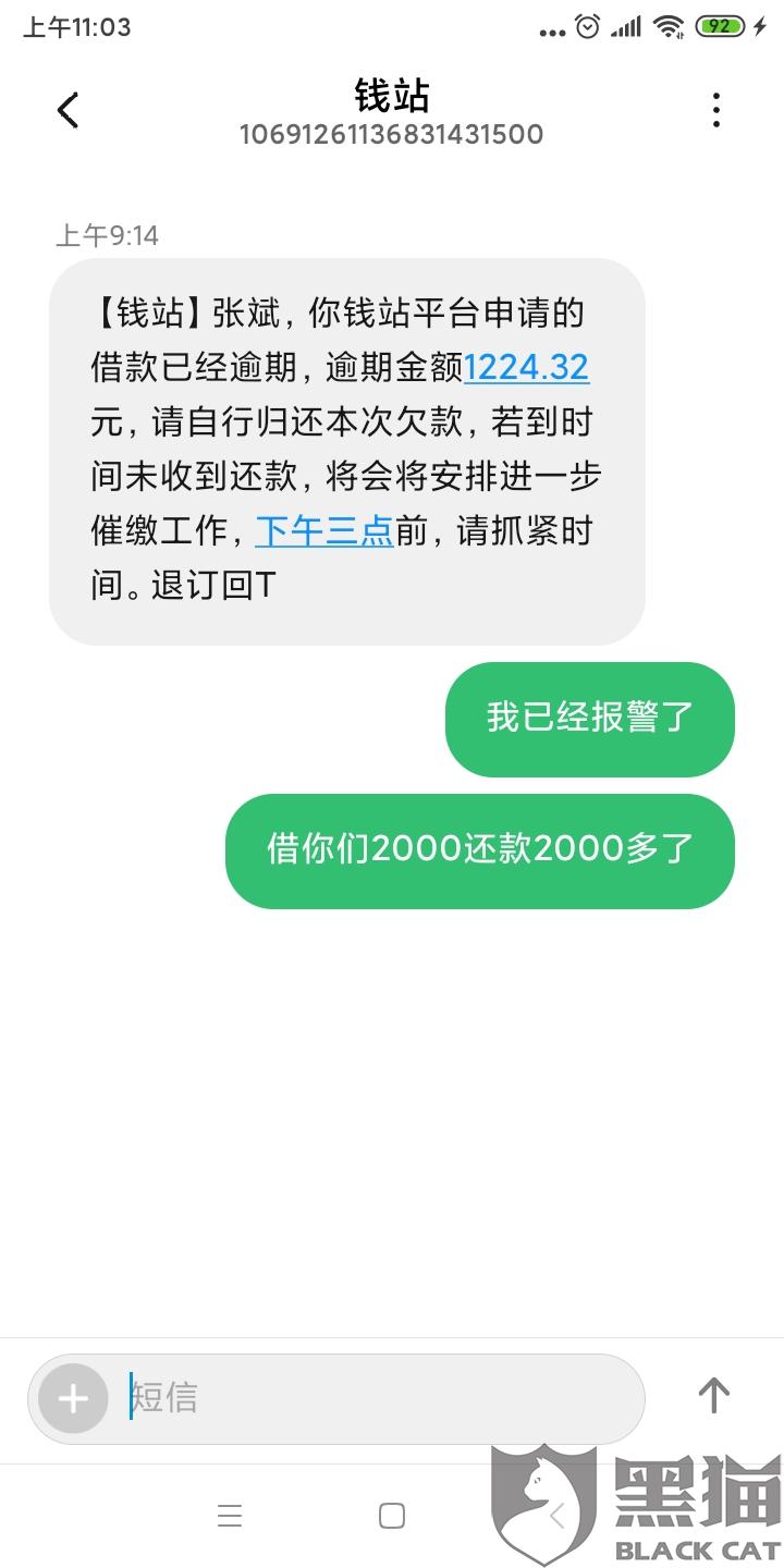 黑猫投诉:钱站利息高,存在阴阳合同
