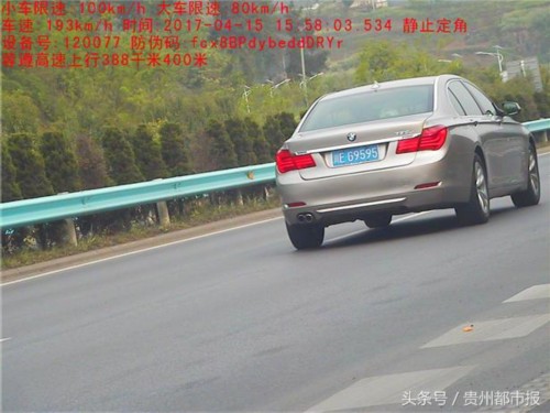 狂飙193码!川E牌照宝马 遵赤高速跑脱12分