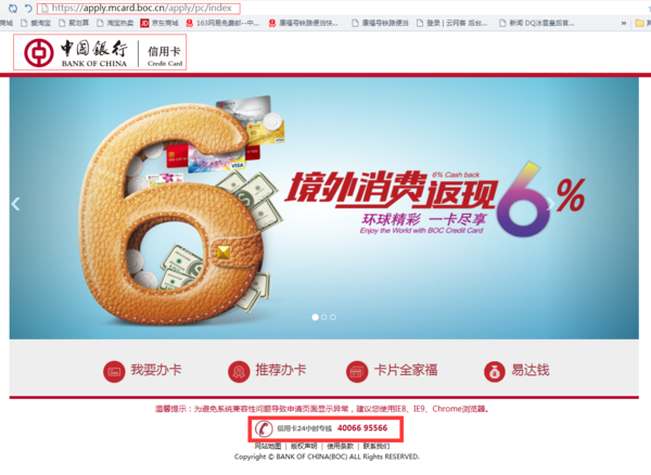 中国银行信用卡安享一生 4006695566推销
