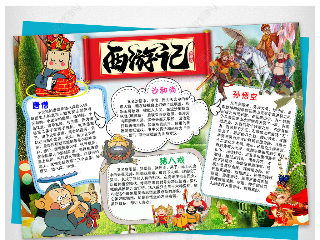 西游记小报古典名著读后感手抄报小报模板