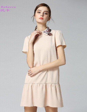 瑞比卡MarcRebecca 包袖褶裥裙摆刺绣连衣裙杏色S【图片价格品牌报价】-京东