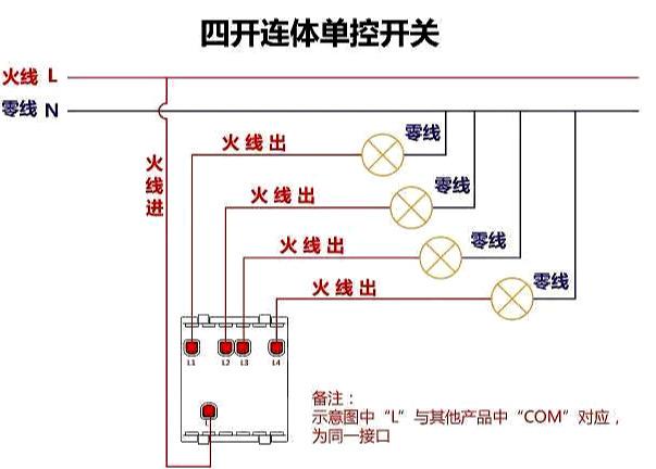 四开单控开关接线图