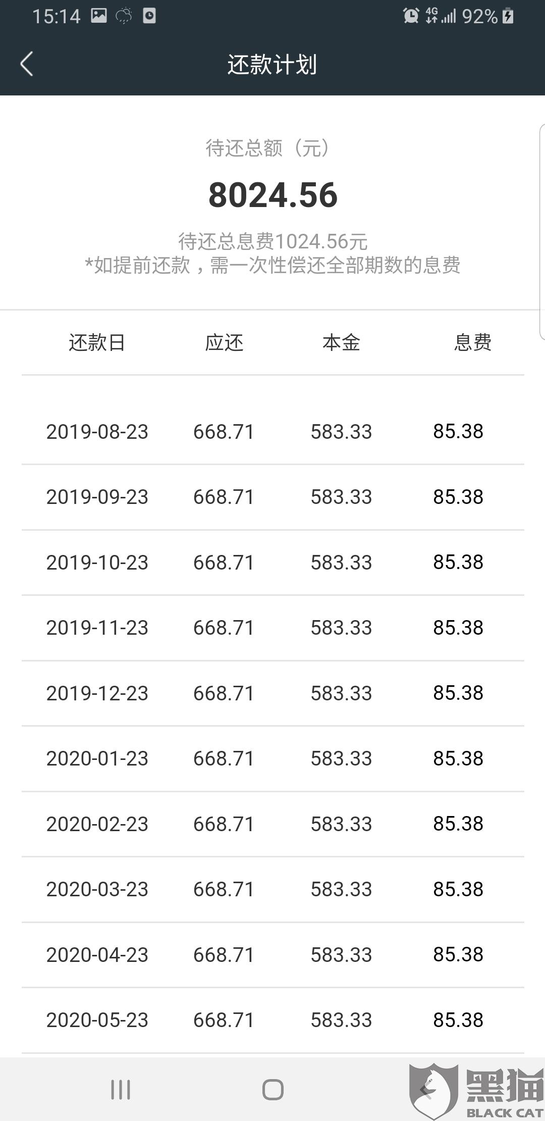 [最佳答案] 360就是一个给你提供借款的中介,你是根本无法借到一万元钱的,纯属坑人。给你3000元钱18期等额还本付息,一个月还300元,共计还本付息5400元,你敢要吗?