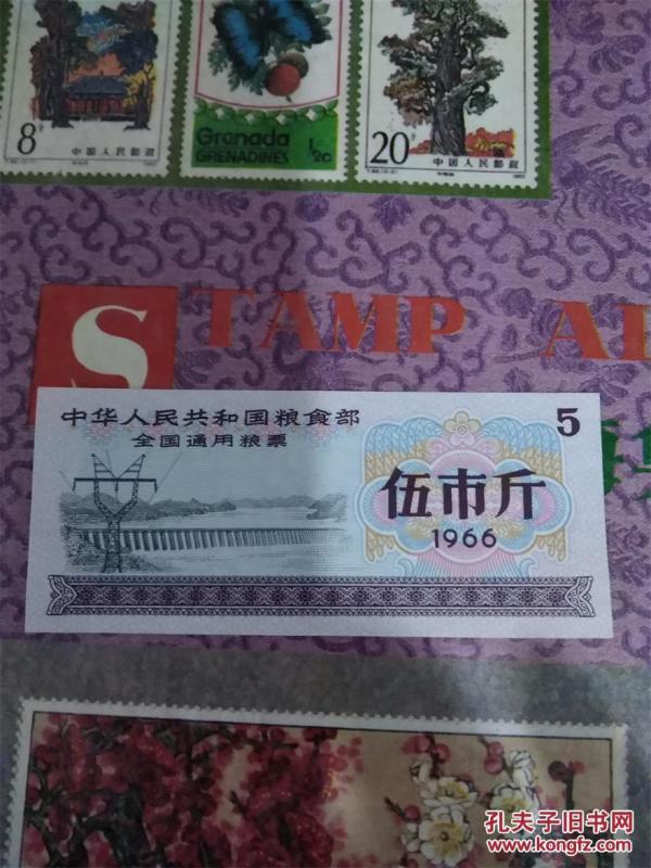 一九六六年印发的5市斤全国粮票,如今五十多年过去啦。其历史原因不言而喻。当年全国各省直辖市城市都发行了地方粮票。由于当时省与省之间的