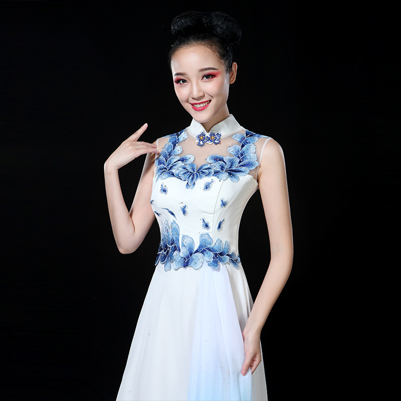 青花瓷古筝大合唱演出服女长裙新款舞台