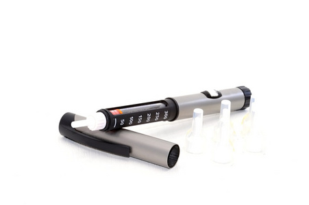 胰岛素注射笔扩展上白色带剪辑 p 孤立