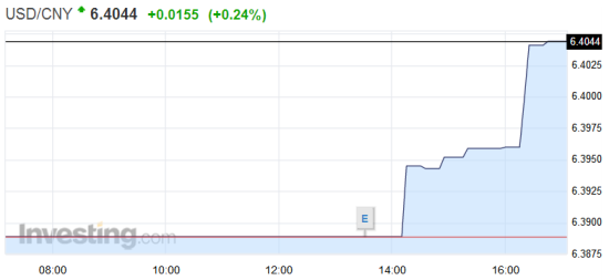 人民币兑美元汇率1分钟跳涨逾200点 做空