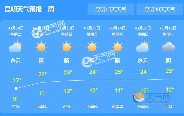 昆明天气预报,及时准确发布中央气象台天气信息,便捷查询昆明今日天气,昆明周末天气,昆明一周天气预报,昆明蓝天预报,昆明天气预报,昆明40日天气预报,还提供昆明的生活指