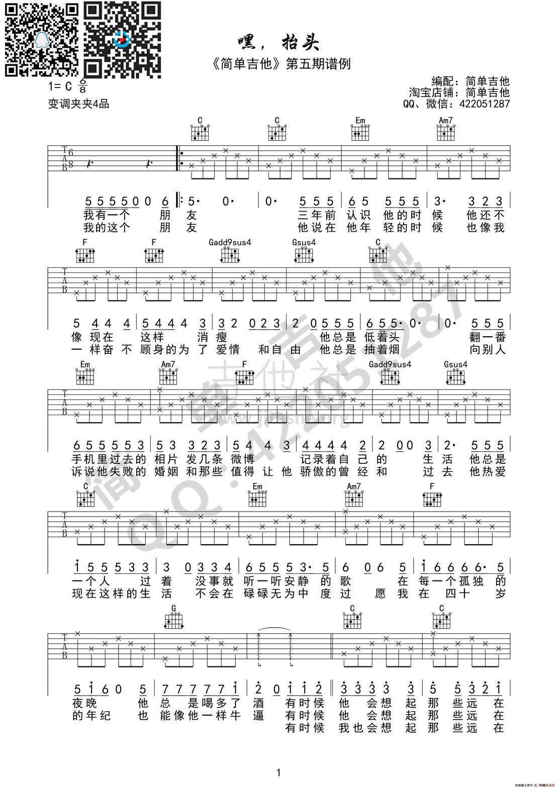 嘿,抬头吉他谱(图片谱,弹唱,民谣)_贰佰