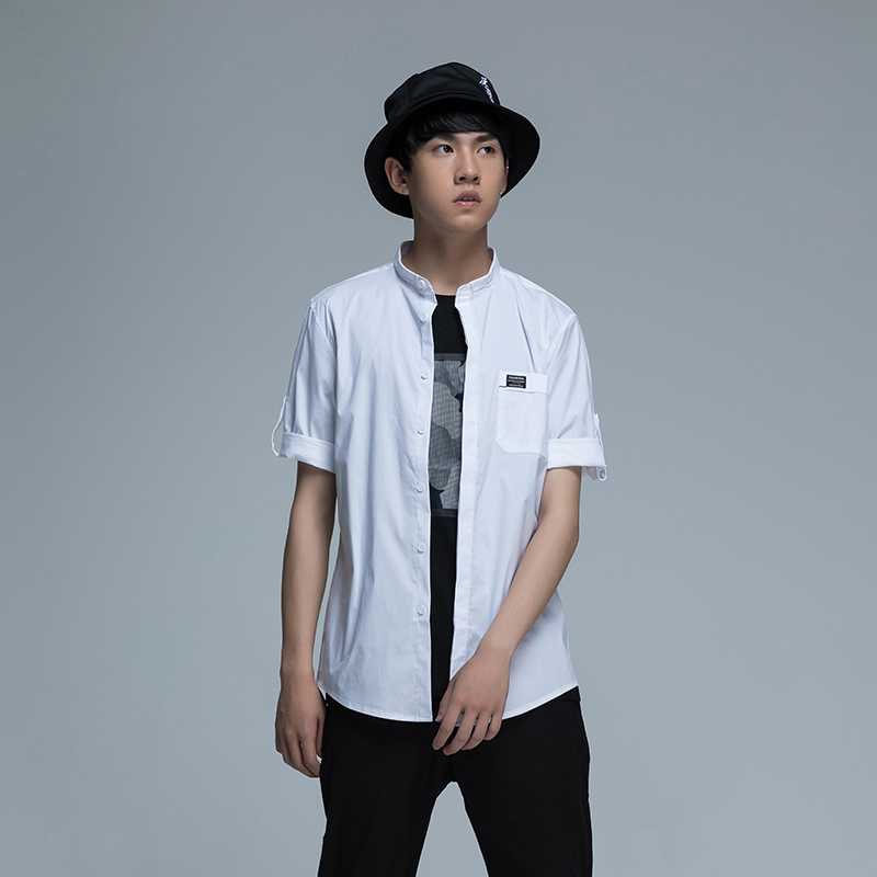 IRA男装2018夏季新品白色休闲短袖衬衫