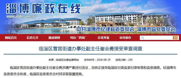 鲁中网-鲁中晨报8月30日讯(记者 张琦)30日,记者从临淄区纪委监委获悉,临淄区雪宫街道办事处副主任崔会勇涉嫌严重违纪违法,目前正接受临淄区纪