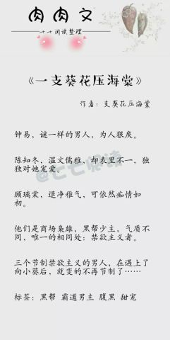 [最佳答案] 《邪魅殿下专宠小丫头》 《御用恶煞》(有关黑道的,楠竹长得很妖孽,出身很好,很深 3P 3C 推荐 现代文<后面夹一点点女主穿越,只 是一点点啦>) 《一胎五口》 《霸