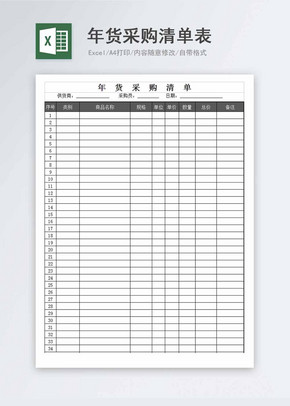 Excel表格通用模板:年货采购清单