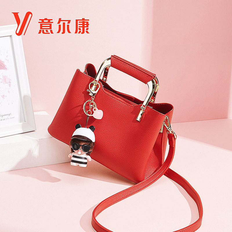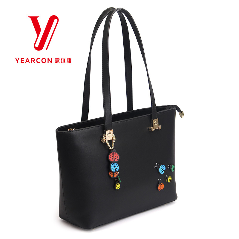 意尔康女包纯色大容量单肩包可爱瓢虫装饰