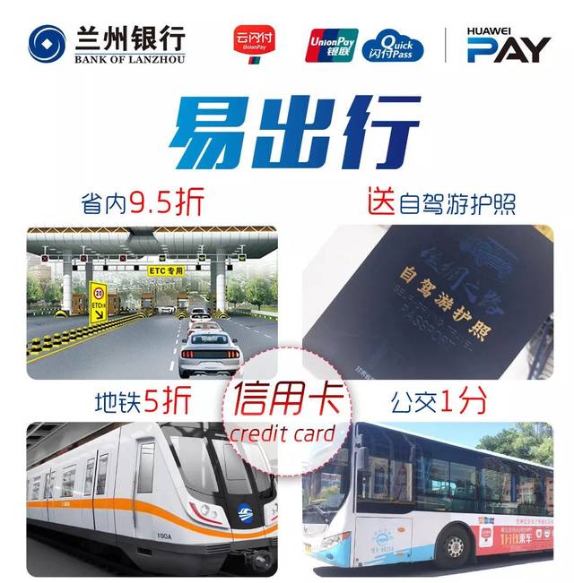活动内容:兰州银行信用卡(借记卡)直接刷卡,绑定苹果PAY、华为PAY乘车或绑定云闪付APP二维码乘车,每日可享受“1分钱”乘车。单用户单日可