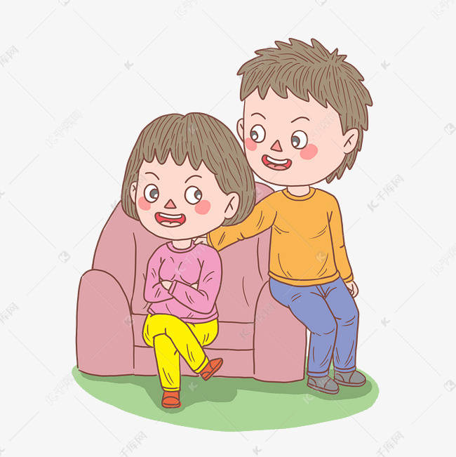 卡通手绘人物男孩哄女孩素材图片免费下载