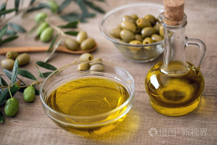 特级初榨橄榄油和醋在碗里