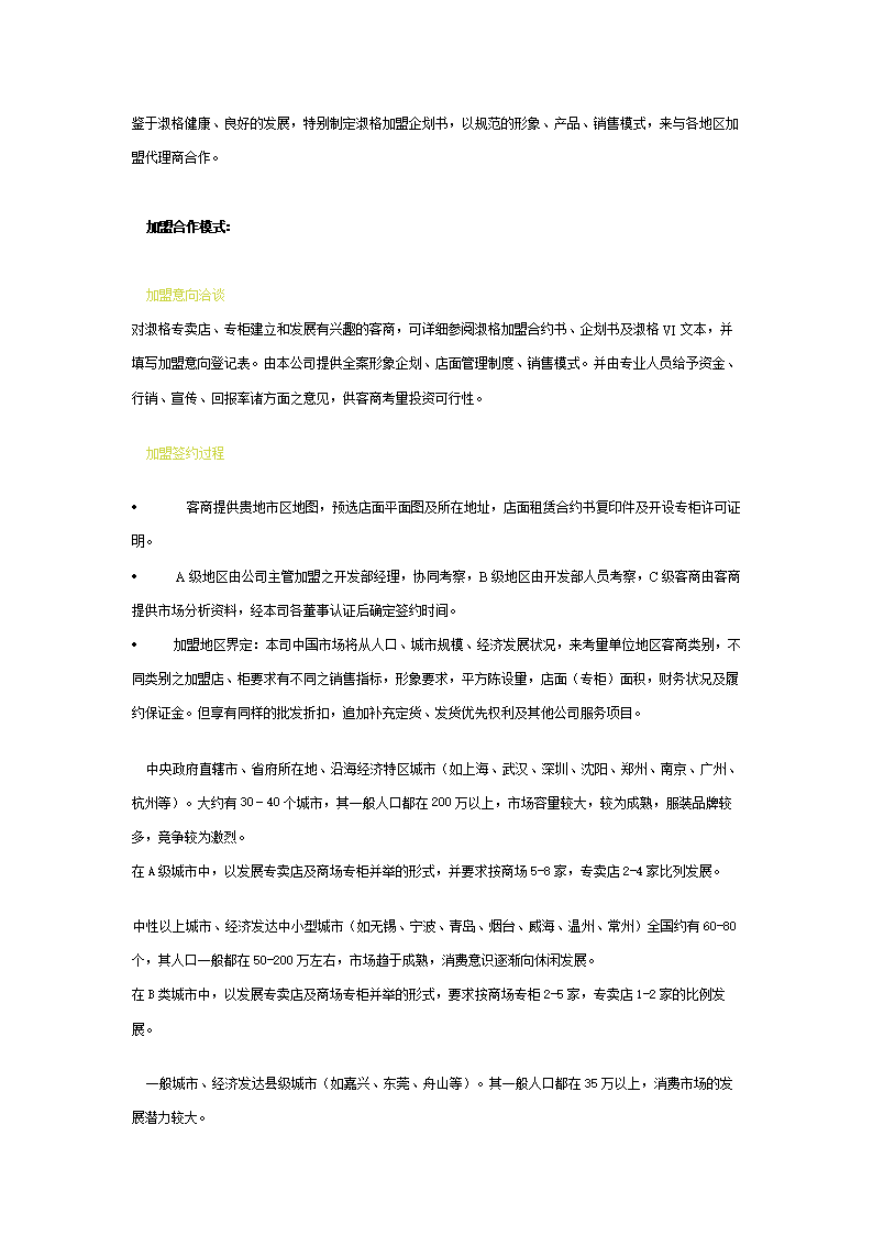 企划书 模板第一部分:摘要 描述所要经营的是什么行业,卖什么产品(或服务),谁是主要的客户,目前市场情况怎么样?竞争是否激烈,是个人独资、合伙经营还是有限公司的形式,需要多少钱的投资,赢利空间多大,目前进展到什么阶段,有什么样的经营管理措施等。第二部分:项目介绍 1、 企业、项目地点:华东师