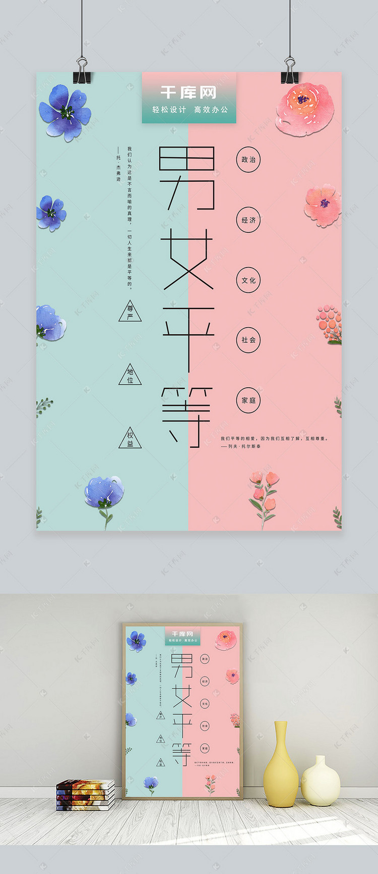 简约小清新男女平等公益海报海报模板下载