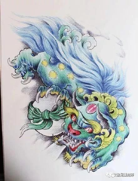 喜欢福狮纹身、唐狮子纹身的看过来,这里的手稿很漂亮!