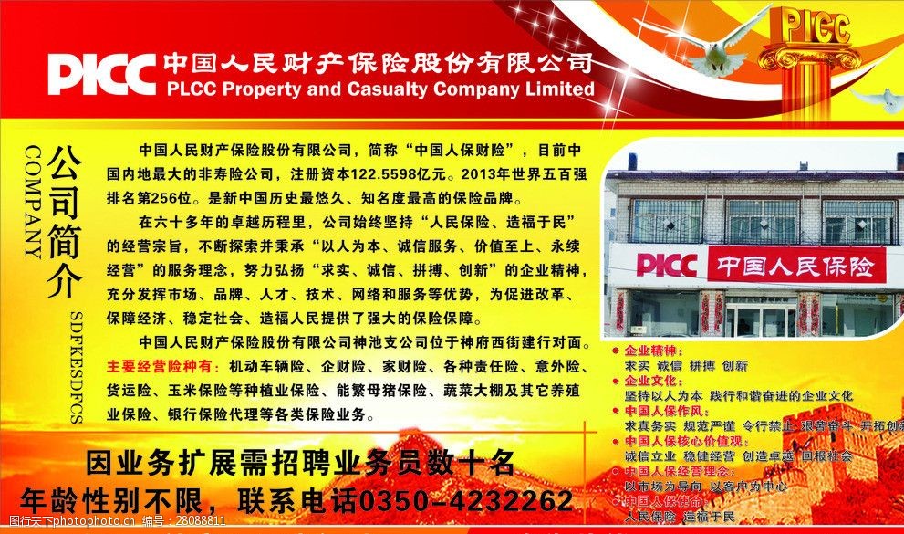 [最佳答案] 中国人民财产保险公司车险的服务电话是95518,投保热线是400-1234567。中国人民财产保险股份有限公司是经国务院同意、中国保监会批准,于2003年7月由中国人民保险集团公司发起设立的、亚洲最大的财产保险公司,注册资本122.5598亿元。其前身是1949年10月20日经中国人民银行报政务院财经委员会批准成立的中国人民保险公司2003年11月6日,公司在香港联交所成功挂牌上市,成为中国内地大型国有金融企业海外上市“第一股”。扩展资料:人保财险是国内最大的非寿险公司,在非寿险市场处于领先地位,主导