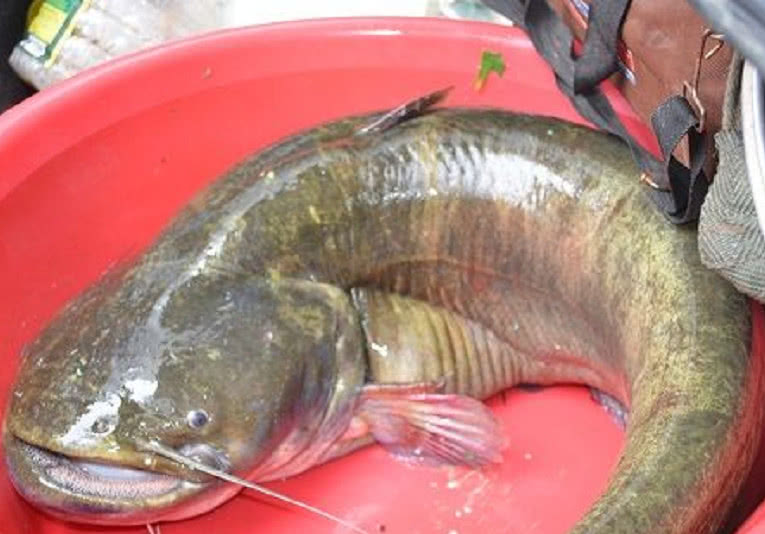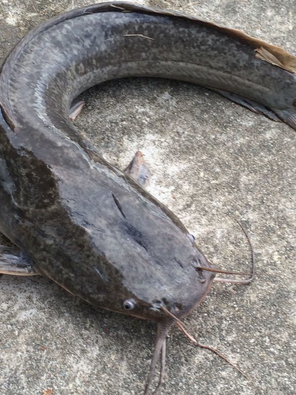 钓获八须鱼,全身灰黑,黏糊糊的,很多人不敢
