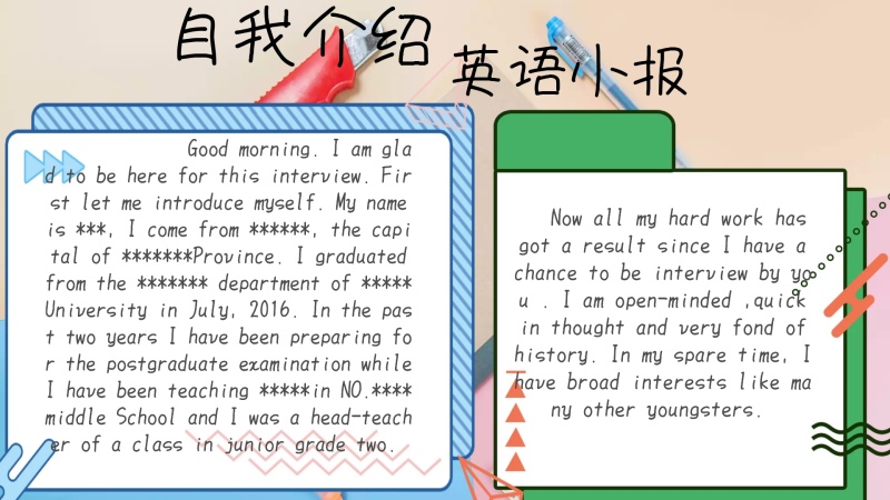 英语自我介绍模板手抄报