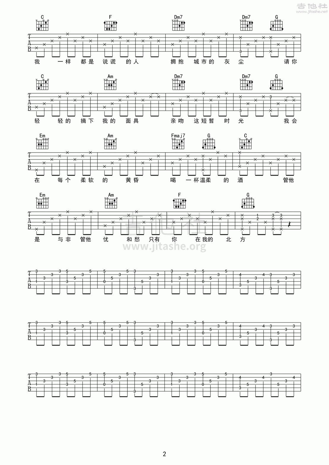 北方女王 尧十三原版C调六线吉他谱-虫虫