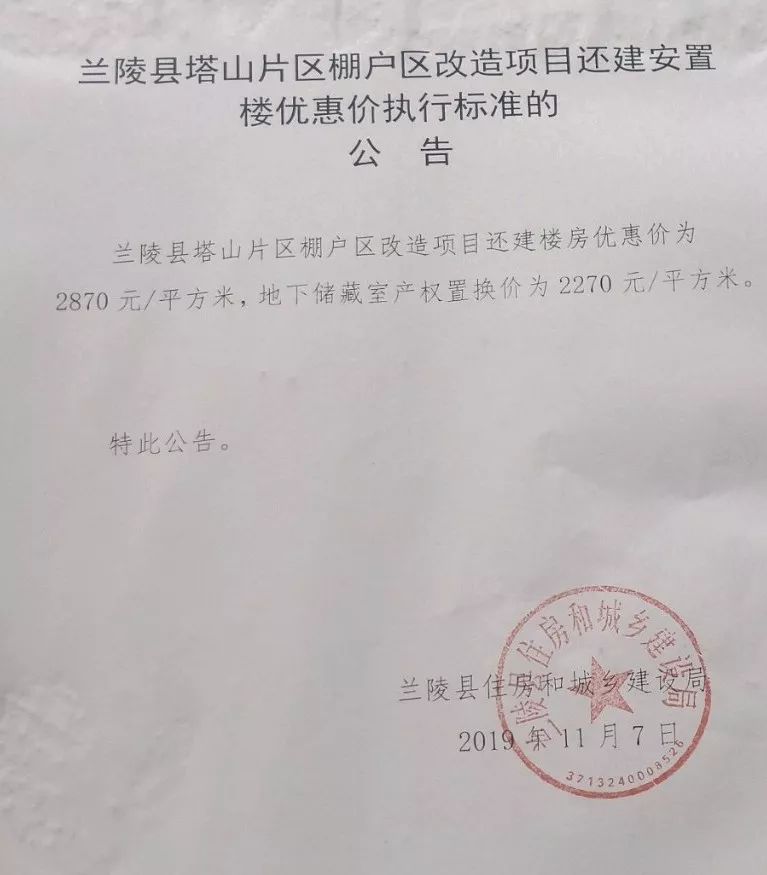 兰陵县塔山片区棚户区改造项目补偿方式、