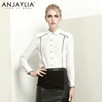 Anjaylia正品简约女士衬衣2014个性翻领