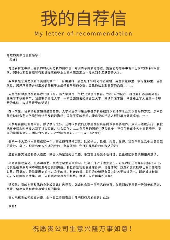 简历自荐信提供求职自荐信、简历自荐信范文,教会大家怎样写简历自荐信。 简历自荐信 相关栏目推荐 毛遂自荐个人简历封面2012-03-25 个人简历栏目