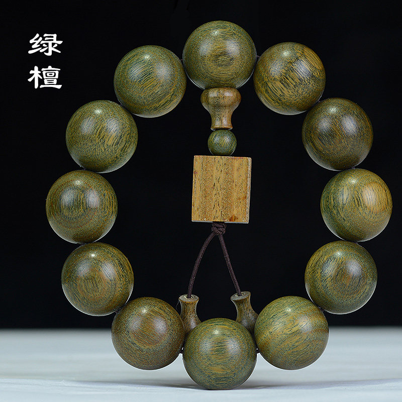 保真绿檀手串20MM顺纹大手串手链佛珠 -