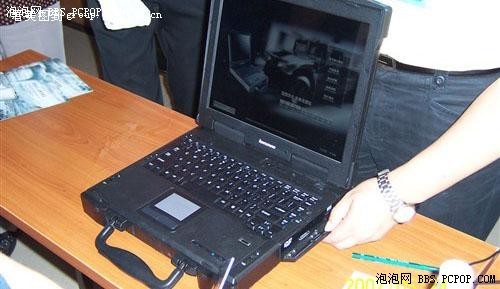 中关村在线笔记本频道,在4月27日的联想07奥运战略启动大会上拍摄到了这款价值9.8万元的军用笔记本,其型号为联想昭阳R-2000,以下是记者拍下的
