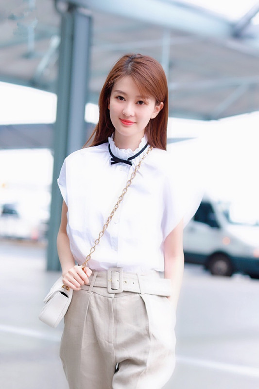 乔欣也太会打扮了,一件荷叶领衬衫搭棉麻休闲裤,可爱好看