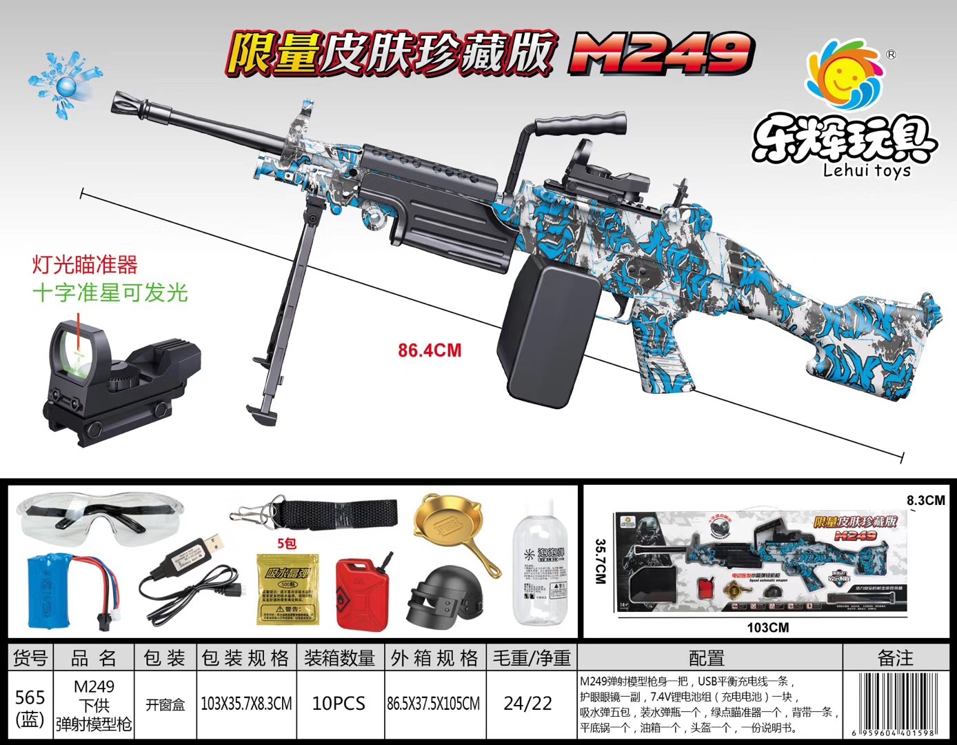乐辉皮肤珍藏版M249水弹枪蓝色涂鸦重机枪模型发射器儿童玩具枪