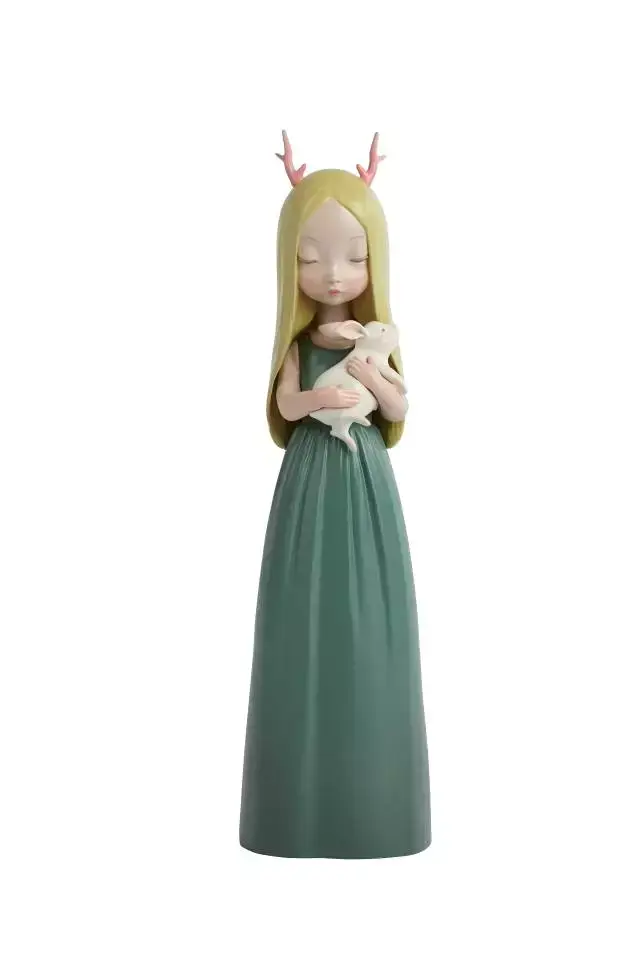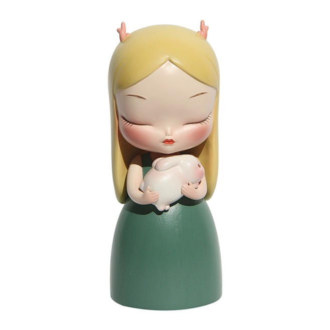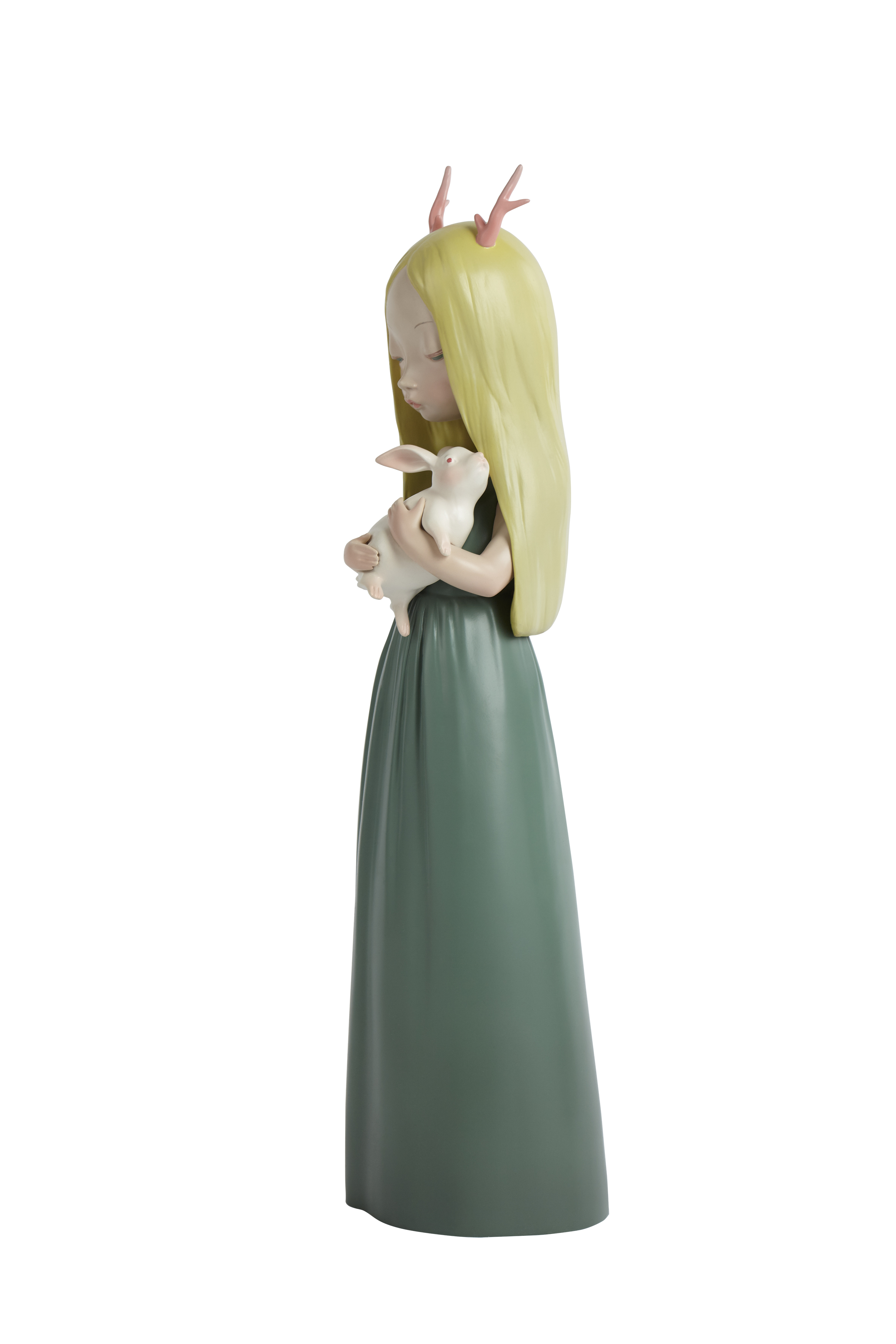 艺术家把这份关怀和祝福寄托在作品上,另一方面,贾晓鸥老师曾坦言自己想要个女儿,也将这份真实的情感倾注于作品上。 “白夜童话”系列的作品主要材质是宝丽石,也有个别