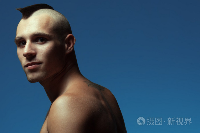 男性美的概念。帅气肌肉男模特大埔的肖像