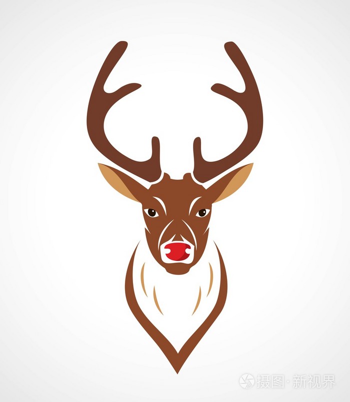 可爱的圣诞红鼻子驯鹿矢量图白色背景上