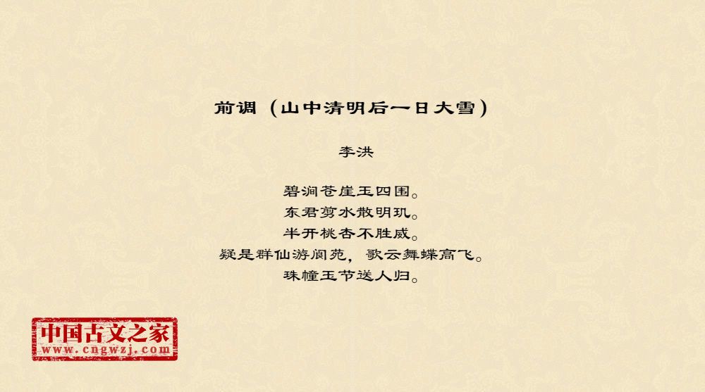 前调(山中清明后一日大雪)繁体版、繁体字