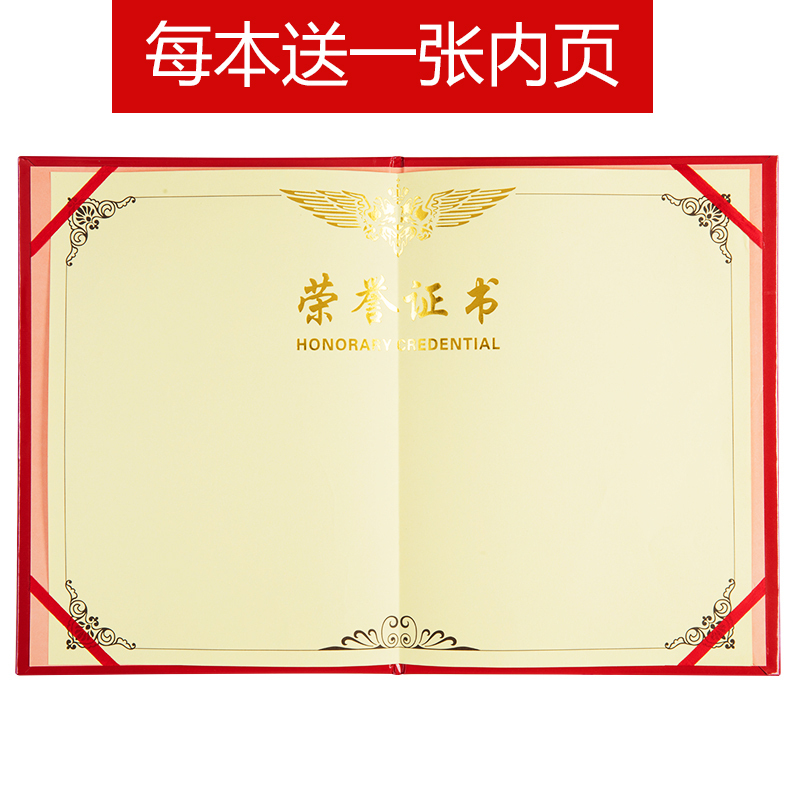 皮质荣誉证书绒面竖款大红植绒红色颁奖