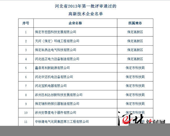 河北省科技厅对今年首批拟认定高新技术
