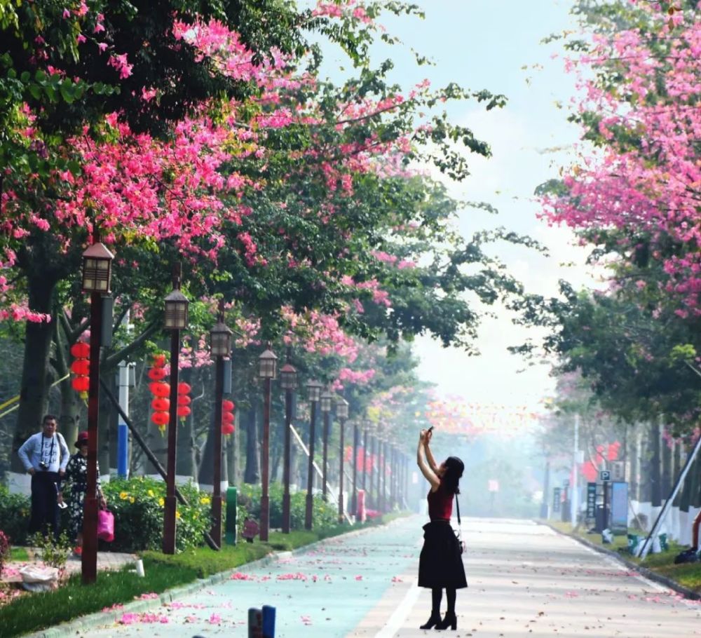 浪漫回忆!翰林湖畔美丽异木棉正欣然怒放