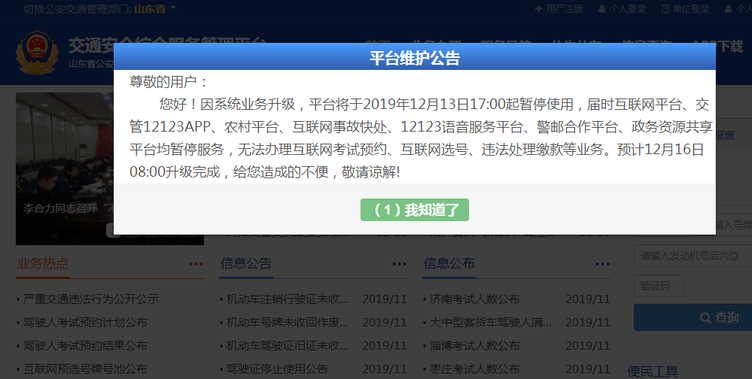 山东交通安全综合服务管理平台交管12123
