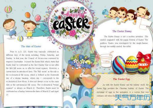 简介:复活节(主复活日)是一个西方的重要节日,在每年春分月圆之后第一个星期日。基督徒认为,复活节象征着重生与