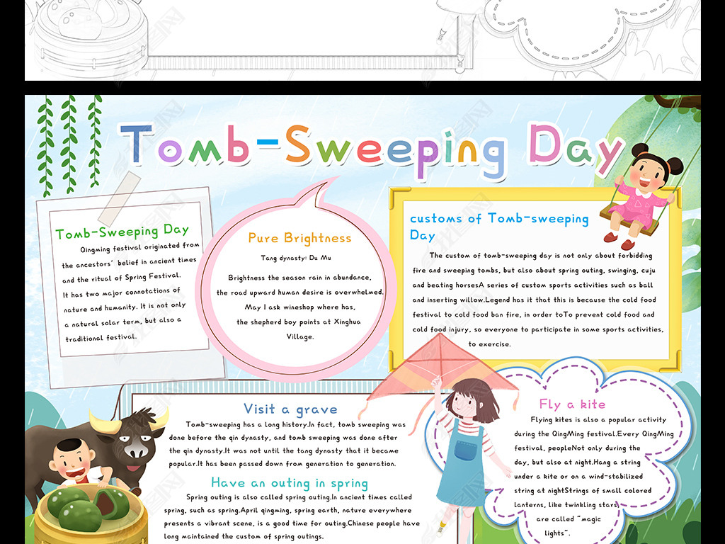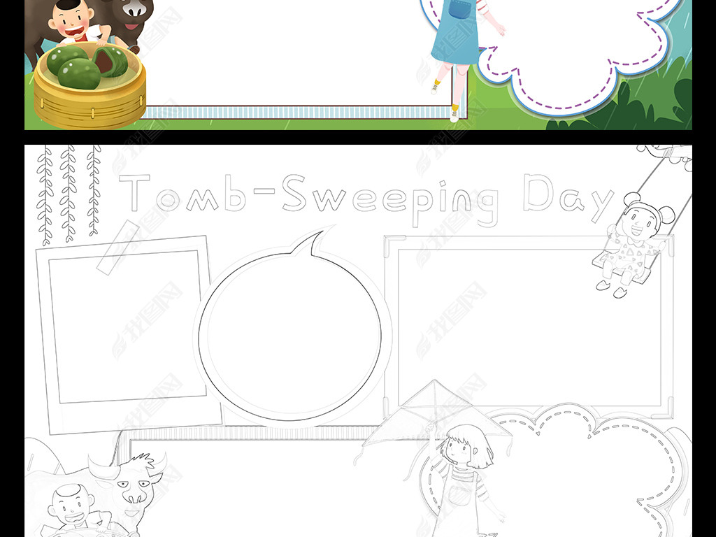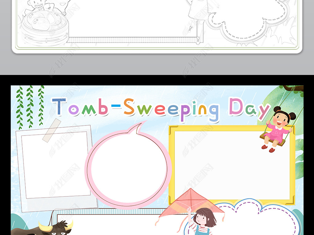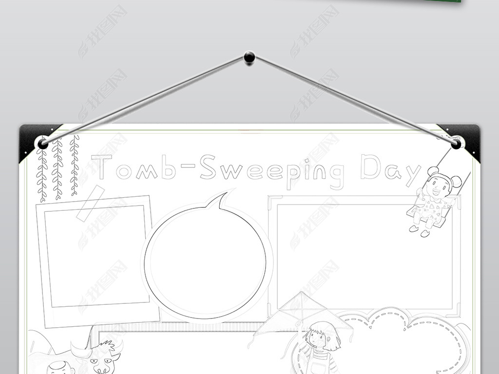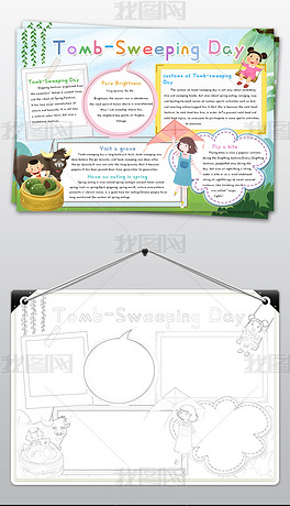 水墨肃穆风清明节学校学生企业扫墓手抄报