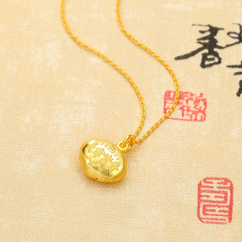 黄金长命锁千足金吊坠 永保平安 宝宝满月
